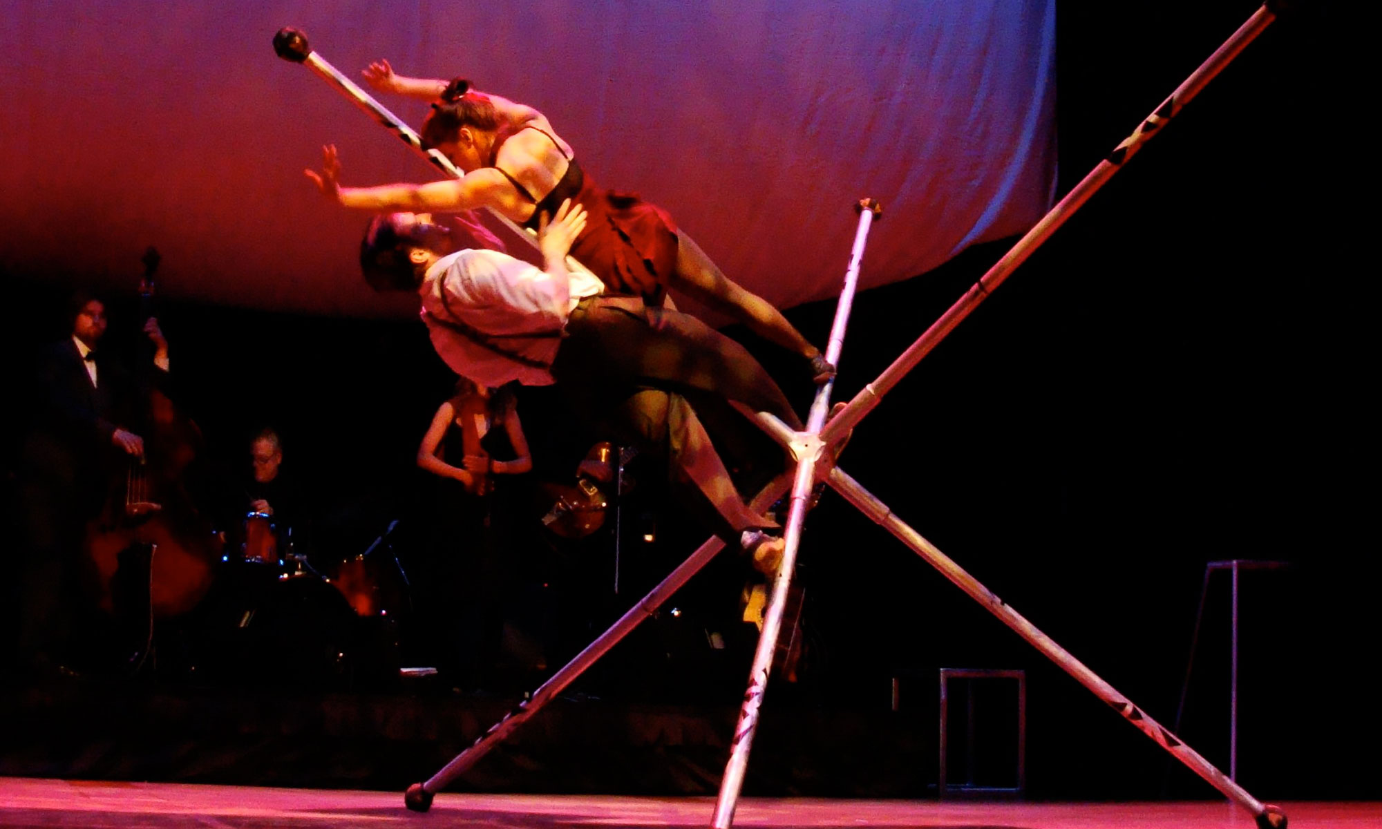 Created as a apparatus for modern Dance by Peter Boulanger, this unique structure was adapted to circus arts by Peter and Ninon at L’Ecole National du Cirque. It has since been featured in hundreds of shows all over the world.